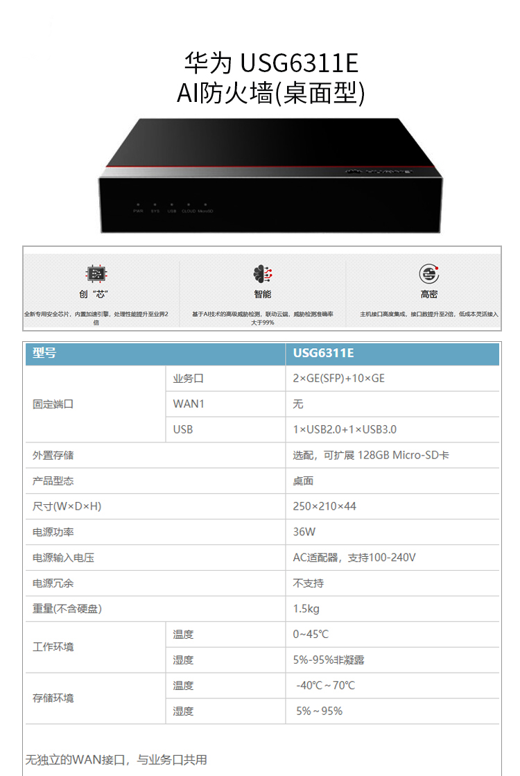USG6311E交流主機(10*GE RJ45+2*GE SFP,含SSL VPN 100用戶)