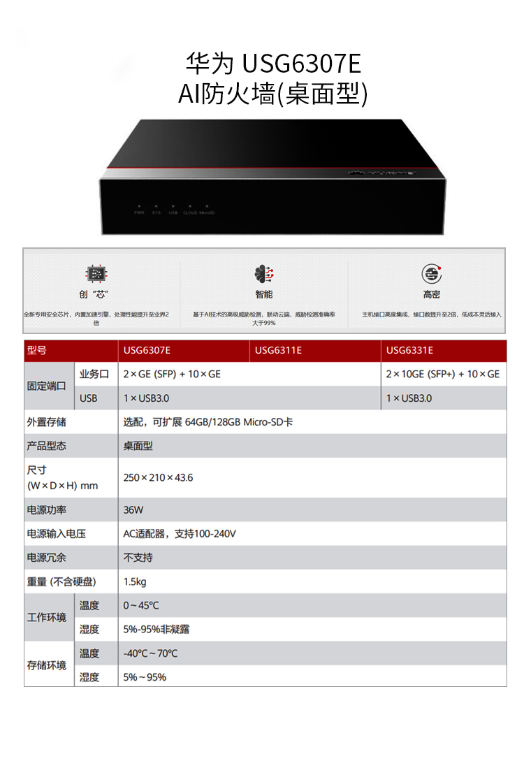 USG6307E交流主機(10*GE RJ45+2*GE SFP,含SSL VPN 100用戶)