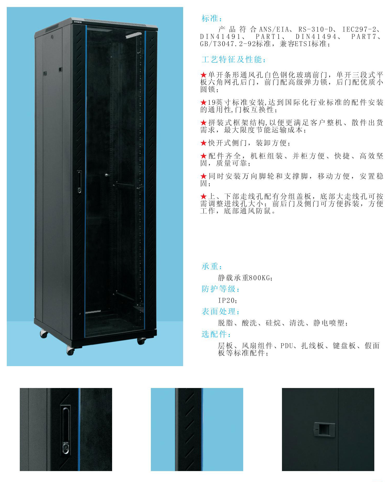 ★ 19 英寸標準安裝,達到國際化行業(yè)標準的配件安裝的通用性,門板互換性;