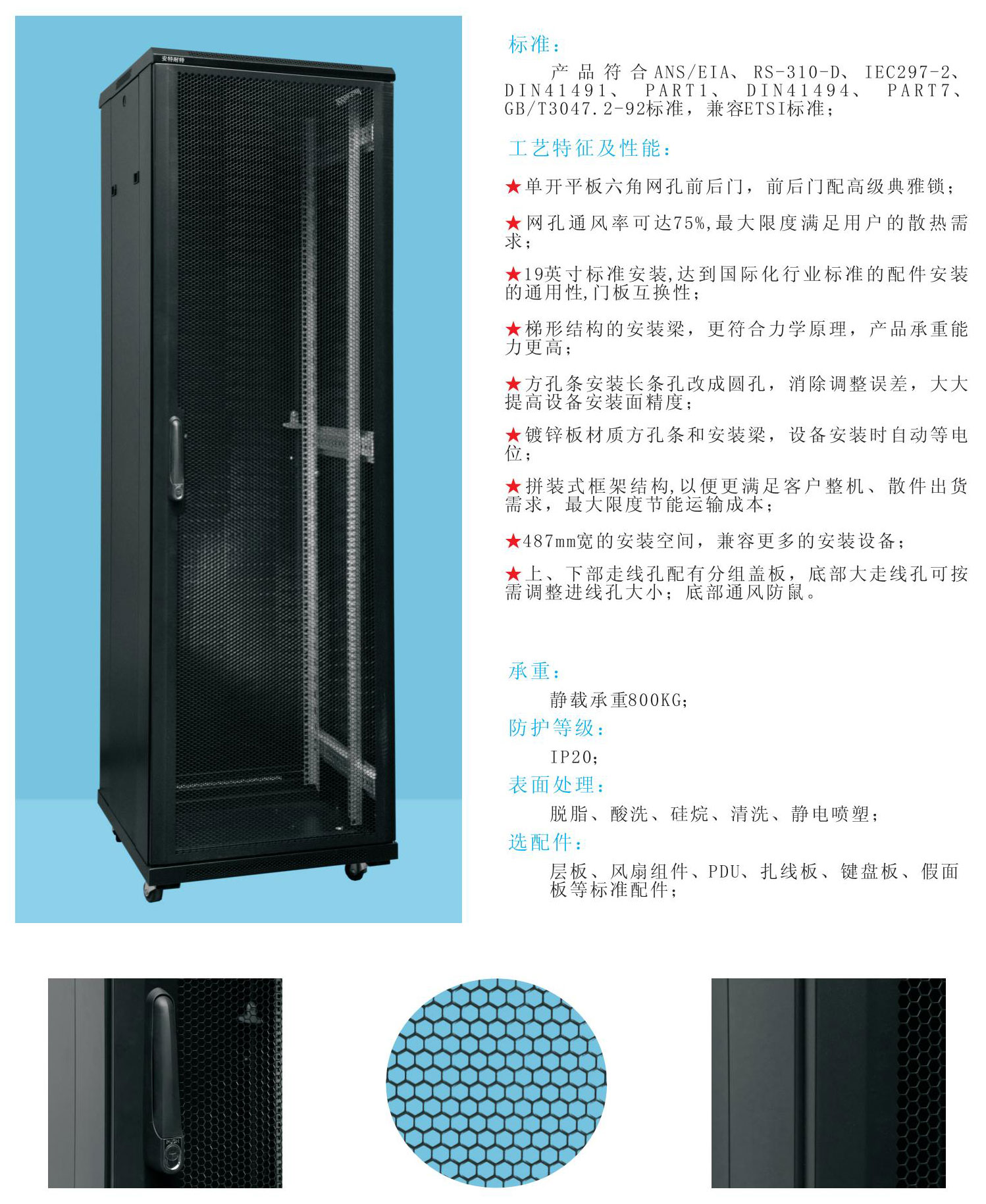 ★ 19 英寸標(biāo)準(zhǔn)安裝,達(dá)到國(guó)際化行業(yè)標(biāo)準(zhǔn)的配件安裝的通用性,門板互換性;